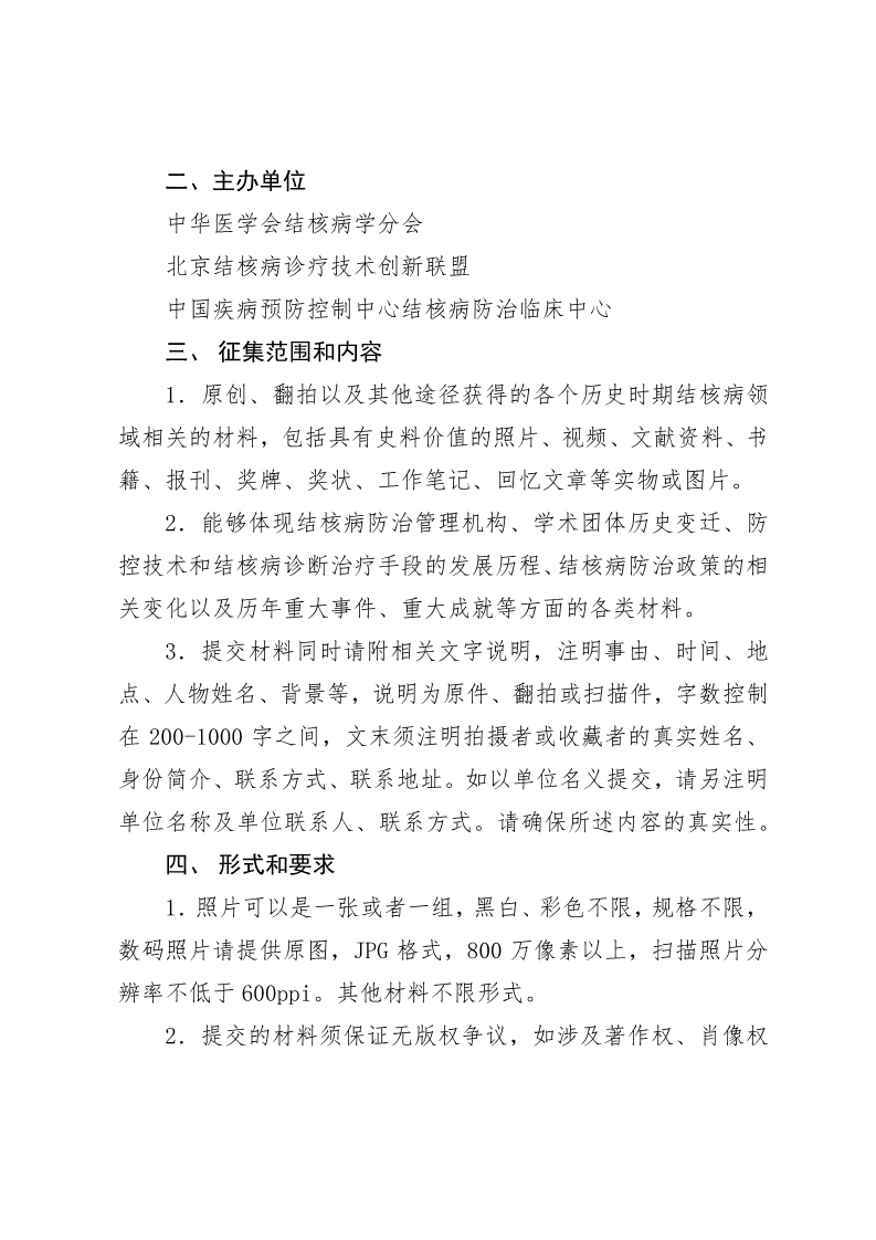 关于开展结核病防治老照片及历史资料征集活动的通知