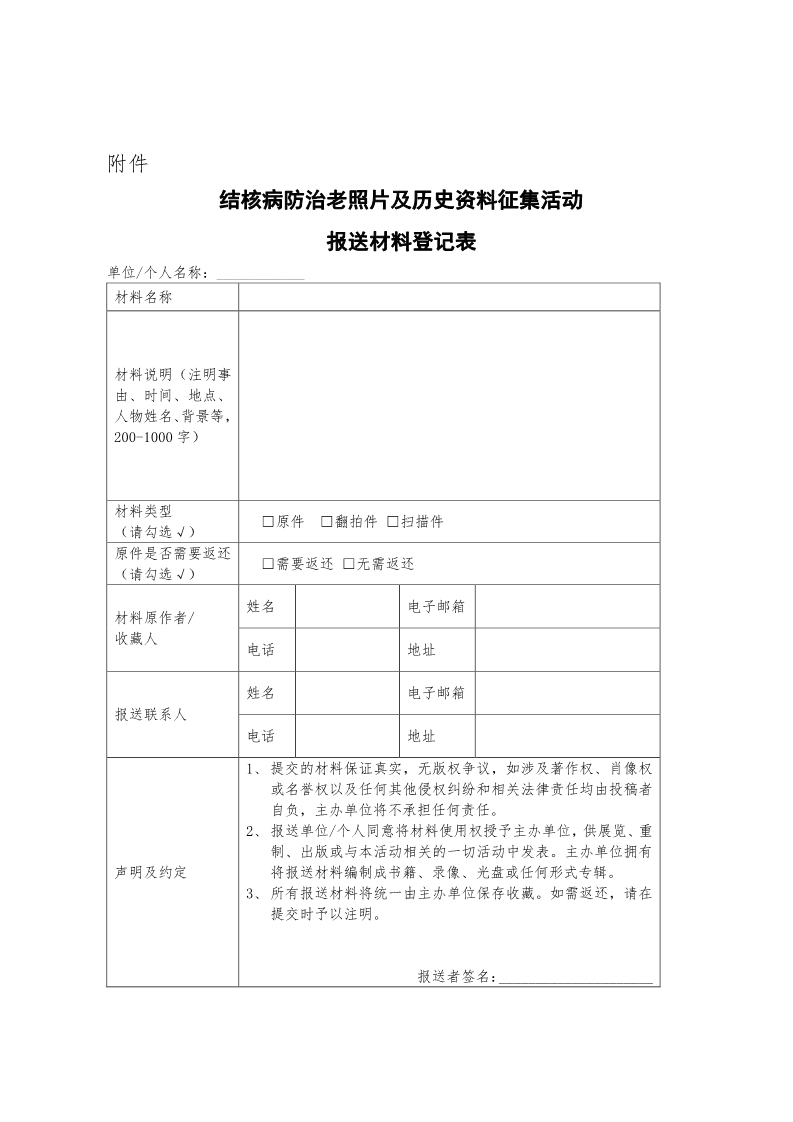 报送材料登记表-结核病防治老照片及历史资料征集活动.docx